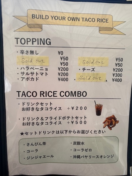 ある日、「ランチ何食べよう」と思いながら目の前に差し掛かった際「タコライス」の登りを見たので、今日のランチ決定!とばかりに立ち寄ってみました。