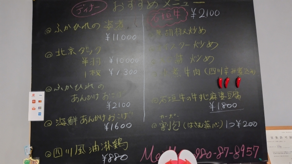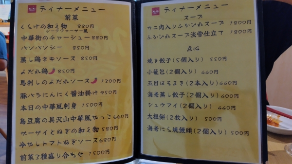 前菜「馬刺し」や点心「小籠包」があったり、「ふかひれの姿煮」や「北京ダック」も食べれちゃうの!? こんな島で!?