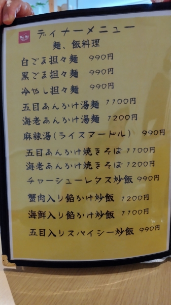 ランチタイムでは、ラーメン・あんかけ焼きそば・点心をいただけるようですよ♪
