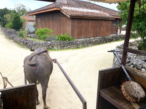 一方、竹富島では集落の中を進みます。20〜30分ほどかけて集落内をぐるっと一周し、出発地点に戻ってくるコースです。