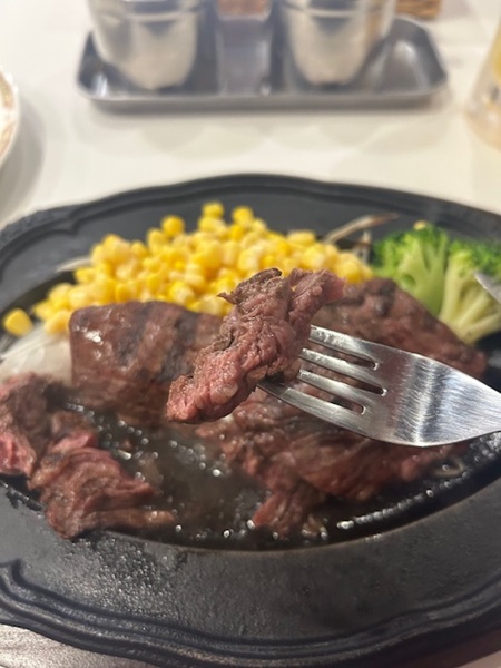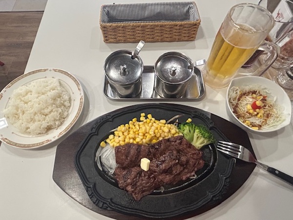 この日はちょっと自分にとって特別な日だったので、ステーキをいただきながらビールでお祝いしました。(もちろんビールは別料金ですよ)