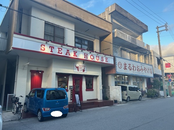バスターミナルと石垣島ヴィレッジのある交差点すぐに「まるわおみやげ店」という、貝殻を扱うお店の左隣にあります。