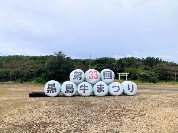 石垣島を出発し、小型船に揺られること約30分。少しだけ船酔いの気配を感じた頃、黒島に到着しました。港には牧草が入ったロールを使った「第33回 黒島牛まつり」の文字が!早速「牛の島」らしい光景が見れてテンションが上がってきました。