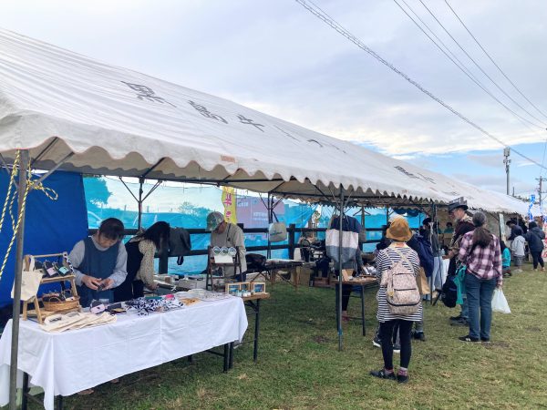 会場は芝生広場!牛肉料理や島の作家さんの雑貨がずらり