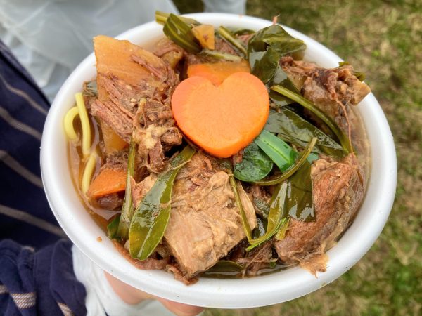 見てください、器から溢れんばかりのこのボリューム!大きくカットされた牛肉がホロホロに柔らかくなるまでじっくり調理された一品です。スープには牛肉のコクがしっかり出ていてホッとする味でした。しっかりあたたかくて、ちょっと寒かったこの日にぴったりです。